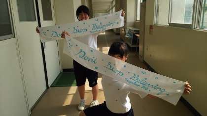 PTAでは、毎年、体育大会用「天中」オリジナルマフラータオルを作り、全校生徒に配布しています。デザイン担当は、本校の美術部の生徒です。今年は「2017 Don't stop believing」の文字をデザインしてくれました。とても爽やかで素敵な作品が完成しました。生徒の皆さん、明日は揃えのタオルを持って、しっかり応援しましょう。