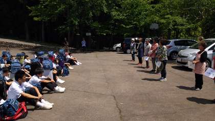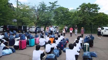 民泊体験入村式のようすです。明日の朝までお世話になります。宿泊先の皆様、よろしくお願いいたします。