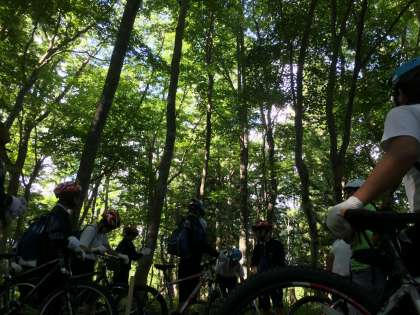 マウテンバイクにまたがり、山の中を走りました。木立の中を吹き抜ける風が爽やかでした。
