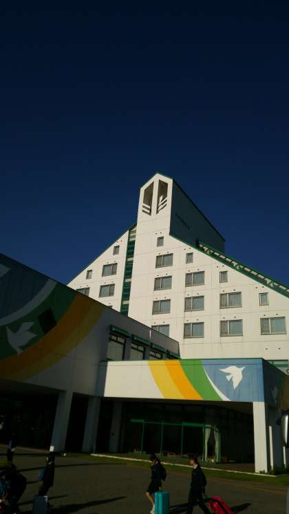 本日宿泊する「鷲ヶ岳高原ホテルレインボー」 に到着しました。入館式が終わり、これからお風呂とお土産購入の時間になります。