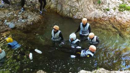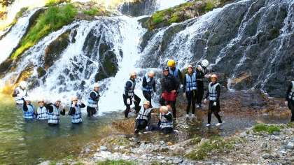 シャワークライミングのようすです。ウエットスーツを着て、沢を登って行きました。マイナスイオンがいっぱいです。