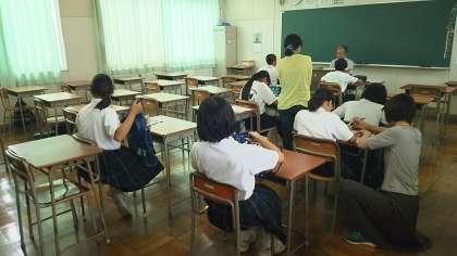 1年生の補充学習会のようすです。数学と国語の夏休みの課題をしているところです。学習支援員として、学校力アップコラボレーターや学校元気アップボランティアスタッフが入ってくれています。