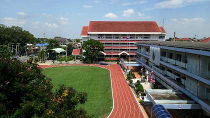 本日は、アユタヤの国立チョムスラン女子中高一貫校との交流でした。写真は校舎・運動場とタイ舞踊の授業の様子です。