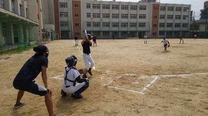 陸上部の顧問がピッチャーを務め、他の教員も入り、野球部と陸上部の生徒でソフトボールの試合をしました。