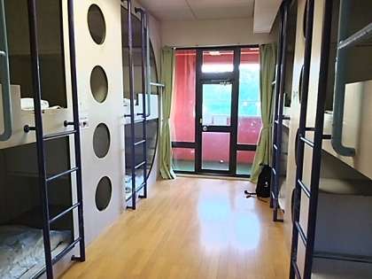 海の活動が終わり、お風呂に入りました。現在、宿泊室に入ったところです。船での宿泊をイメージさせる2段ベッドになっています。