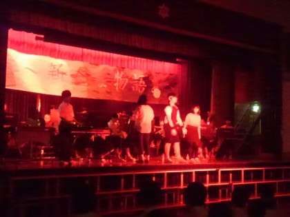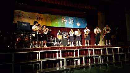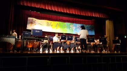 吹奏楽部の演奏です。今年度、大阪府吹奏楽コンクールB組(50人以下編成の部)において、金賞を受賞したみごとな演奏を披露してくれました。また、コミカルな場面も取り入れ、とても楽しい演奏になりました。