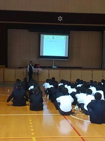 西成警察署交通課の警察官に来ていただき、交通安全教室を開催しました。とりわけ、自転車での被害者・加害者にならないための講話や、自転車を使っての実演をしていただきました。