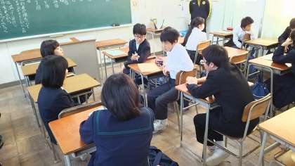 生徒委員会活動のようすです。それぞれの学年での問題を取り上げたり、学年をこえて話し合う中で、よりよい学校づくりを目指しています。写真は生活委員会のようすです。