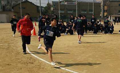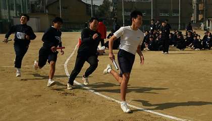 3年生スポーツ大会のようすです。先生も生徒も一緒になって全力疾走。これが中学校最後のレクリエーション大会です。