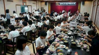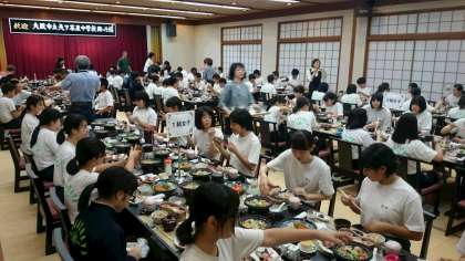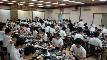 夕食が始まりました。明日からの活動のために、しっかり食べましょう。いただきます!