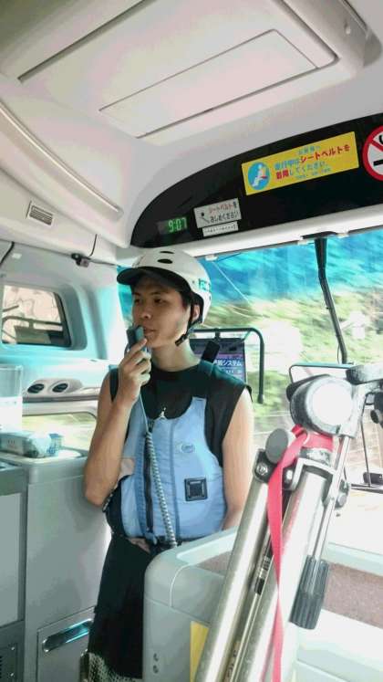 インストラクターさんがバスの中で持ち技を披露中。