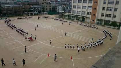 6月14日(木)の体育大会に向けて、1回目の全体練習が始まりました。最初は行進練習からです。