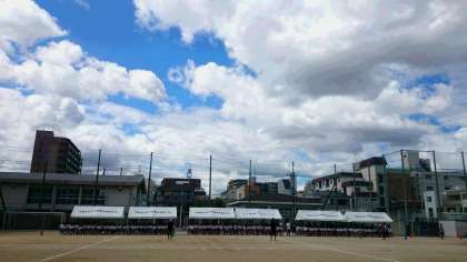 梅雨の最中とは思えない、いいお天気の中、体育大会の予行が始まりました。