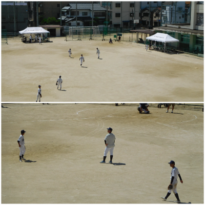 野球部が本校グラウンドで練習試合を行っています。新チームでの新しい体制となってもおおきな声をだして頑張っていました。