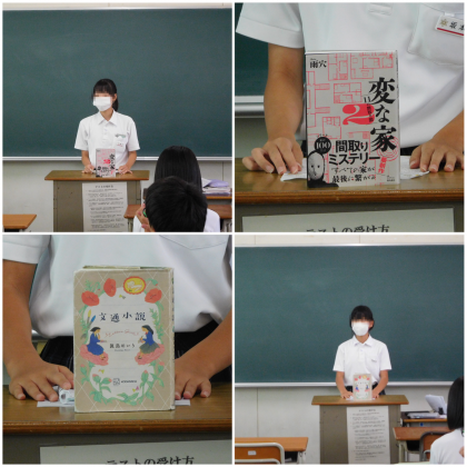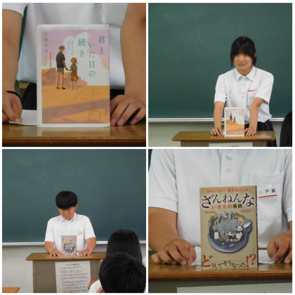 1年1組国語の時間に、各班で選ばれた人がクラス全体で自身が選んだ本の紹介をしています。皆さん、さすが選ばれた人という感じで熱く語ってくれていました。