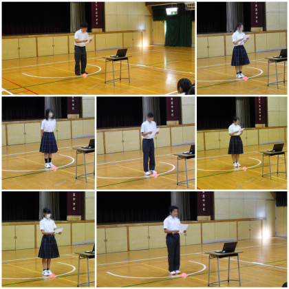 本日は、令和7年度生徒会立候補者による立会演説会を行いました。学校の生徒会を選ぶ大切な選挙です。立候補者は学校をよくするために立候補してくれました。また、応援者による演説も行ってくれました。結果は週明けとなりますが、選ばれた人は学校のため生徒代表としてよろしくお願いします。