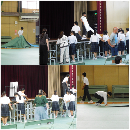 金曜日の文化発表会に向けて、2年生が会場準備をしてくれています。ありがとうございます。