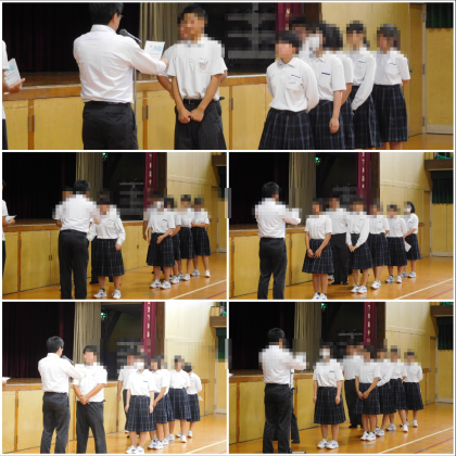 本日は朝から体育館で、生徒会役員と後期学級委員の認証式を行いました。生徒会の皆さん、1年間よろしくお願いします。また、学級委員の皆さん、半年間よろしくお願いします。