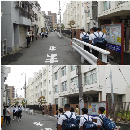 朝登校のようすです。本日はテスト2日目(最終日)です。がんばりましょう。