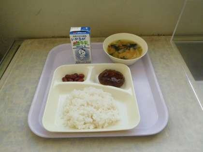 本日の給食は、ハンバーグでした。