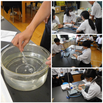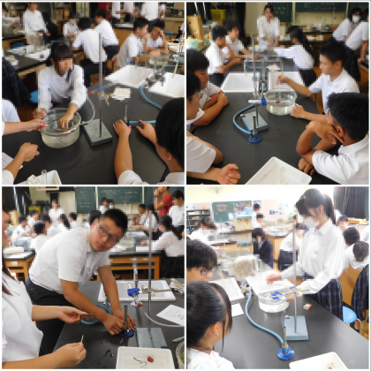 2年1組の理科の授業では、粉末を加熱して気体を発生させ、その性質を調べる実験をしていました。