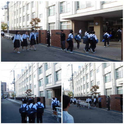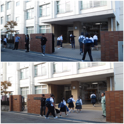 本日の朝登校のようすです。朝はすずしく過ごしやすい秋晴れの日となっています。