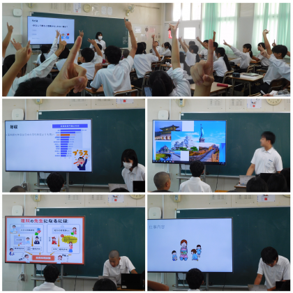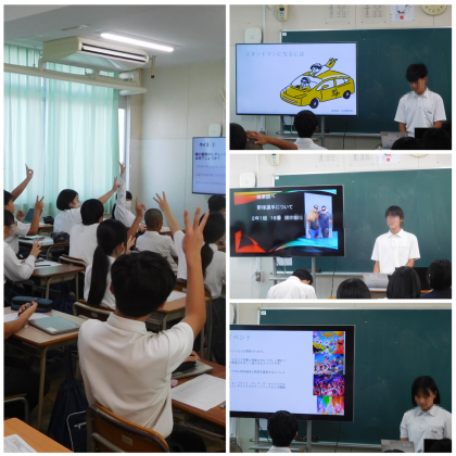 2年1組の国語の時間では、タブレットのパワーポイントを使って職業調べをし、一人一人発表していました。音響効果を利用したり、クイズを出題するなどそれぞれ工夫して発表してくれており、盛りあがっていました。