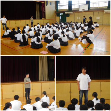 本日は朝から1年生と2年生が学年集会を行いました。1年生では、授業の大切さについてのお話がありました。2年生では、来週の体育大会に向けて、天気に恵まれることを祈って、頑張りましょうとのお話がありました。
