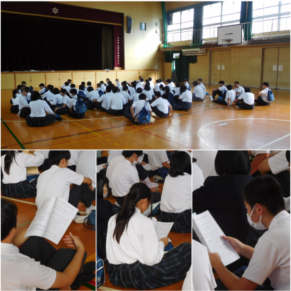 2年生が11月にお世話になるへ職場へ事前訪問へ行きます。各事業所ごとに分かれて出発です。待ち時間は少しリラックスタイムとなっていました。