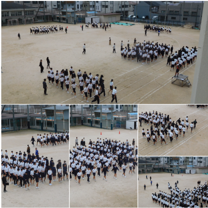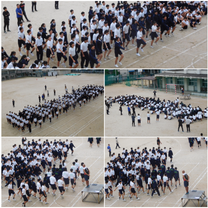 本日は午後から体育大会に向けて全体練習を行いました。入場行進、開会式の練習で、どの学年も競い合って大きな声を出していました。当日もがんばってください。