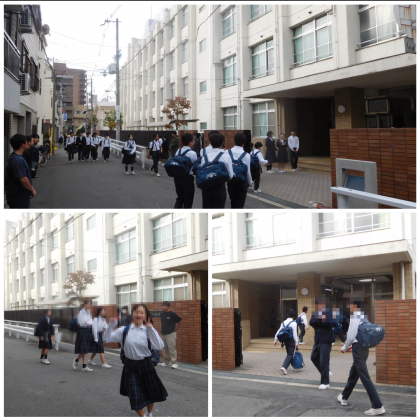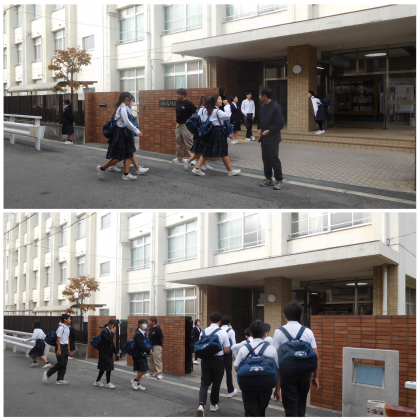 本日の朝登校のようすです。早朝は気温も低く肌寒い日となっています。半そで、長そで、ブレザーと登校してくる人の服装もさまざまです。今日もがんばりましょう。