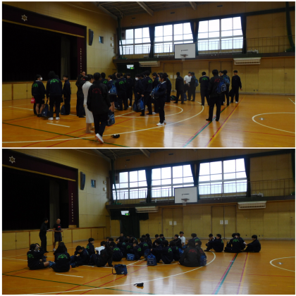2年生が今日から2日間職場体験に行きます。お世話になる事業所ごとに分かれて出発します。事業所の皆さま、お世話になります。