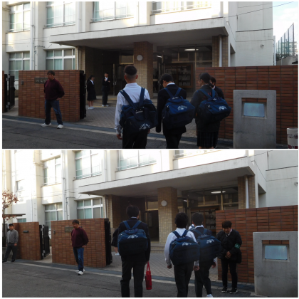 本日の朝登校のようすです。今朝はくもり空ですが、寒さはいく分ましでした。インフルエンザが流行しています。今週も予防対策を取りながらがんばりましょう。