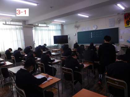 3年生の2学期期末テスト1日目のようすです。今日から3日間がんばってください。