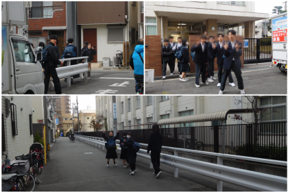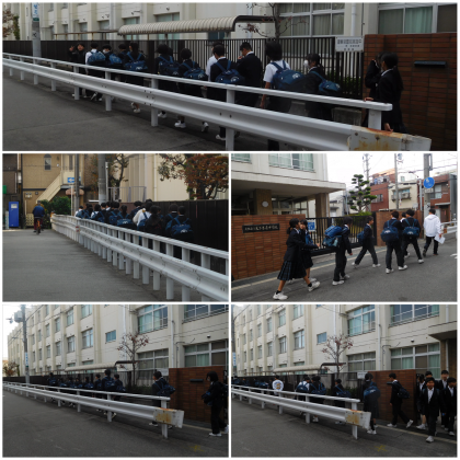災害や事件などに備えて、地域ごとに班となって下校する訓練を行いました。