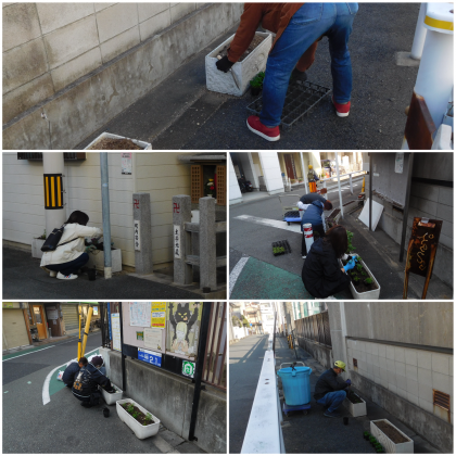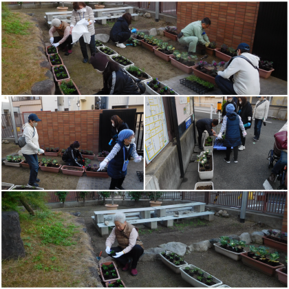 地域の方と元気アップの方、そして管理作業員さんが花の植え替えをしてくださいました。正門付近、校舎まわりのプランターにたくさんの花を植えてくれました。成長が楽しみです。ありがとうございました。