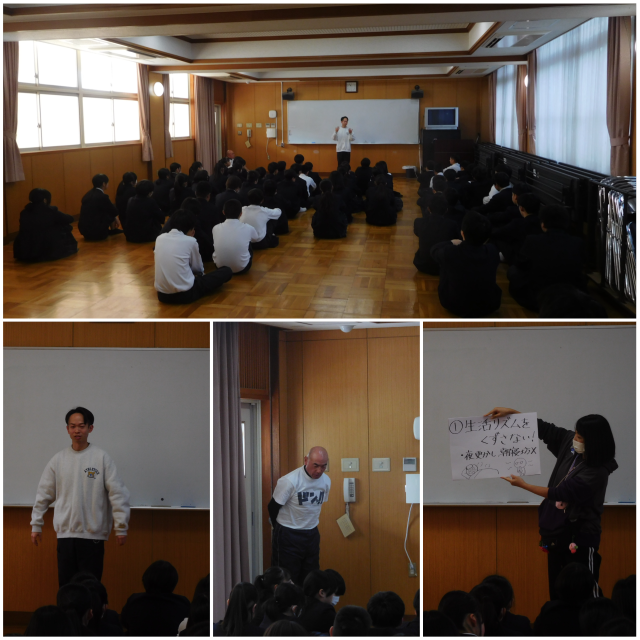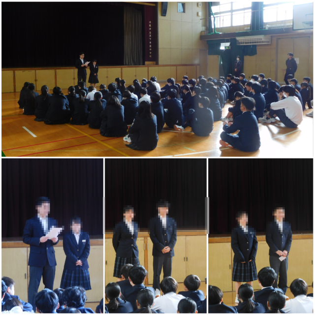 本日は、3学年すべての学年で集会を行いました。担当の先生や代表の人から2学期の反省や3学期に向けてのお話がありました。