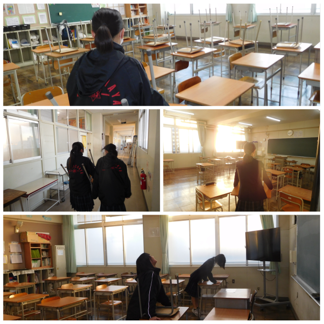 昨日は放課後にワックスがけをしたため、机イスをすべて廊下に出したままでの下校となりました。その机イスを朝早く登校し、みんなのために入れてくれる心優しい人たちがいました。みんなのためにありがとうございます。
