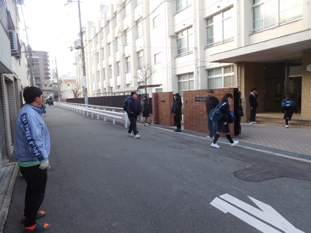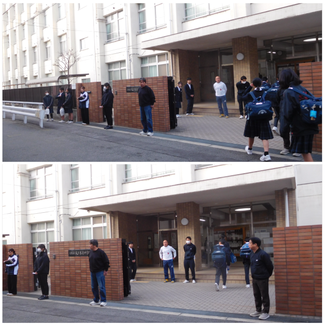 本日の朝登校のようすです。寒さの続く毎日ですが、がんばりましょう。