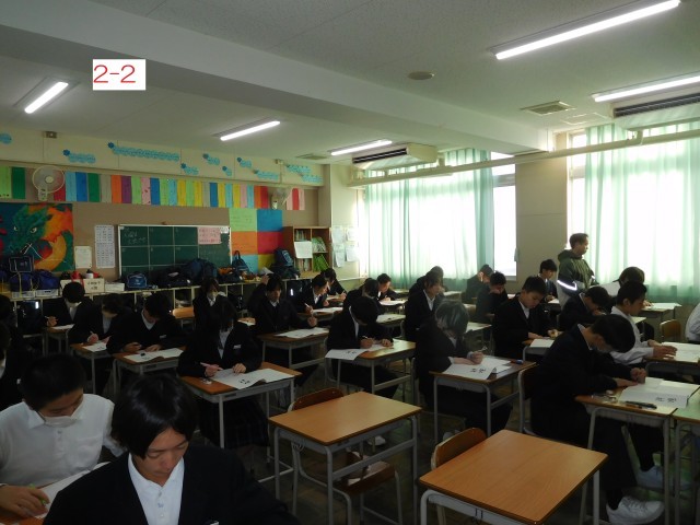 2年生が大阪府チャレンジテストに臨んでいます。がんばってください。
