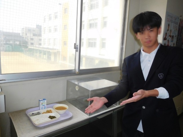 本日の給食は、こまつなっ葉めし、さけの和風マリネソースかけ、じゃがいもとベーコンのみそ汁でした。学校給食献立コンクールの最優秀作品に選ばれたメニューだそうです。とてもおいしかったです。3年生のS君が紹介してくれています。