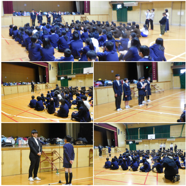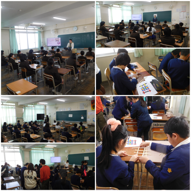 本日は午後から校区小学校の皆さんを中学校に招いて交流会を行いました。初めの会では、生徒会の人が見本を見せながら天下茶屋中学校のあいさつを丁寧教えてくれていました。そのあと教室にいって模擬授業の体験行いました。