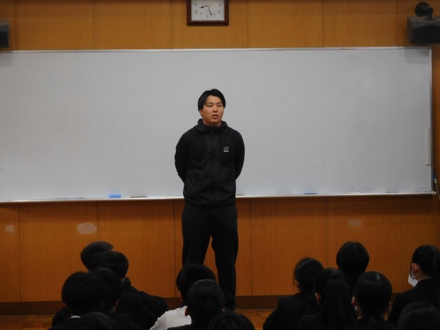 本日は朝から2年生が学年集会を行いました。担当の先生から、最近少し気になることについてお話してくれました。掃除、あいさつ、授業の受け方で少し気のゆるみがある人はいませんかと問いかけてくれていました。また、違う先生からも朝の登校時間について注意喚起がありました。学年集会ぎりぎりに登校する人(カバンを教室に置きに行けず、集会場の後ろに置く)が多くなってきていることに警鐘を鳴らしてくれていました。