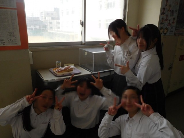 本日の給食は、ポトフ、鶏肉と野菜のケチャップソテー、デコポンでした。写真撮影の際に3年生が寄ってきてくれました。