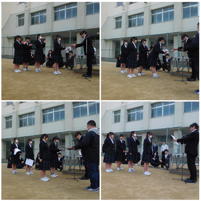 3枚目は全校集会で校長先生から賞状伝達したときのようすです。