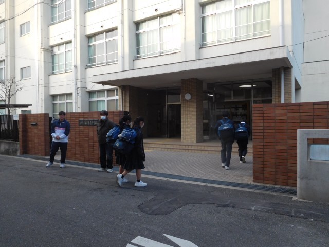 本日の朝登校のようすです。今朝も寒さが戻ってきています。体調管理に気をつけてがんばりましょう。