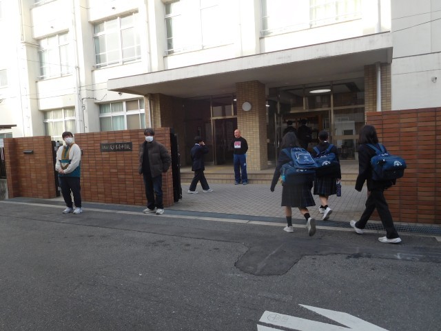 本日の朝登校のようすです。3連休も明けて今週は今日からスタートです。寒さもおさまり過ごしやすい日となってきました。1,2年生は明日からテストです。3年生も全員の進路が決まるまであと少しです。がんばってください。