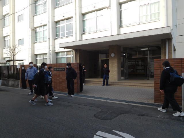 本日の朝登校のようすです。昨日に引き続き今朝も寒さの厳しい日となっています。今週金曜日は卒業式です。中学校生活もあとわずかです。がんばりましょう