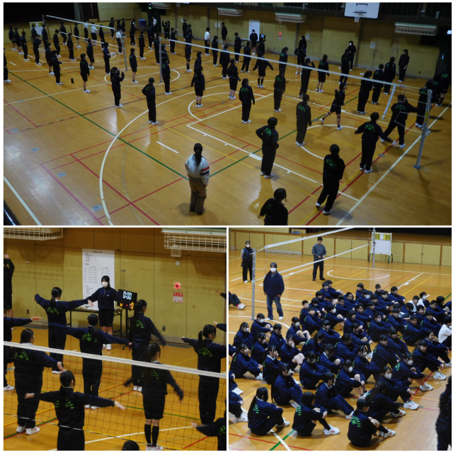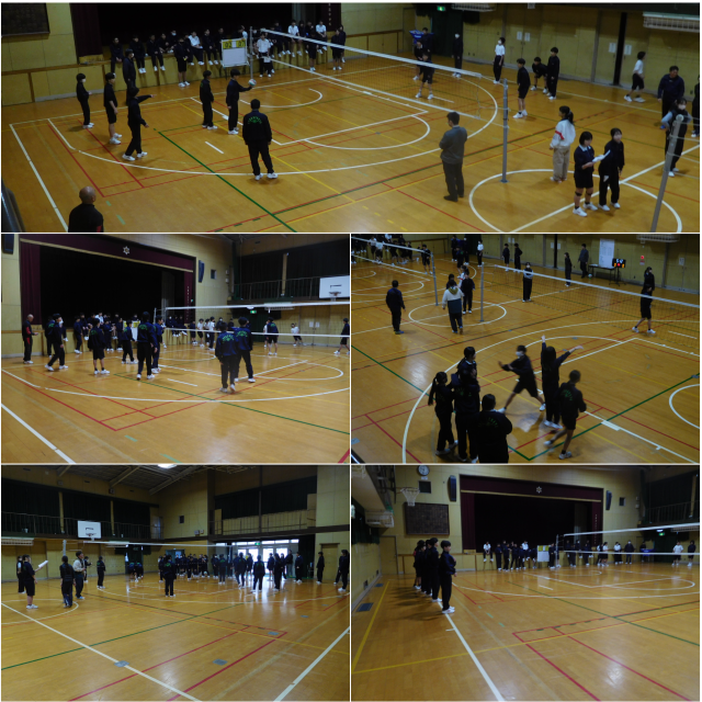 1年生が学年レクリエーションとしてクラス対抗でバレーボール大会を行いました。盛りあがっていました。
