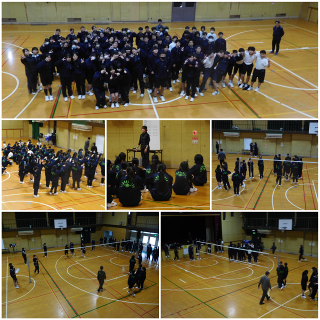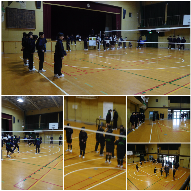 1年生が学年レクリエーションとしてクラス対抗でバレーボール大会を行いました。盛りあがっていました。